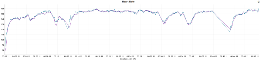 Blue — Active Max, purple — Polar Verity Sense.