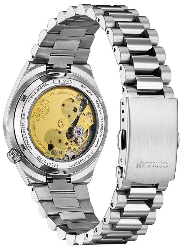 Mechanical with automatic winding. Citizen 8210, Power reserve 45h, 21.600 BPH (3Hz), 21 stones