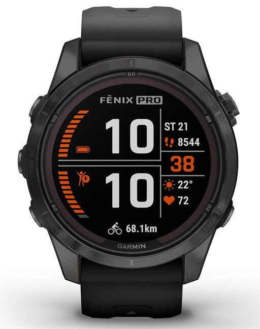 Garmin Fenix 7S Pro Sapphire Solar Gray DLC Titanium / Black Silicone Band