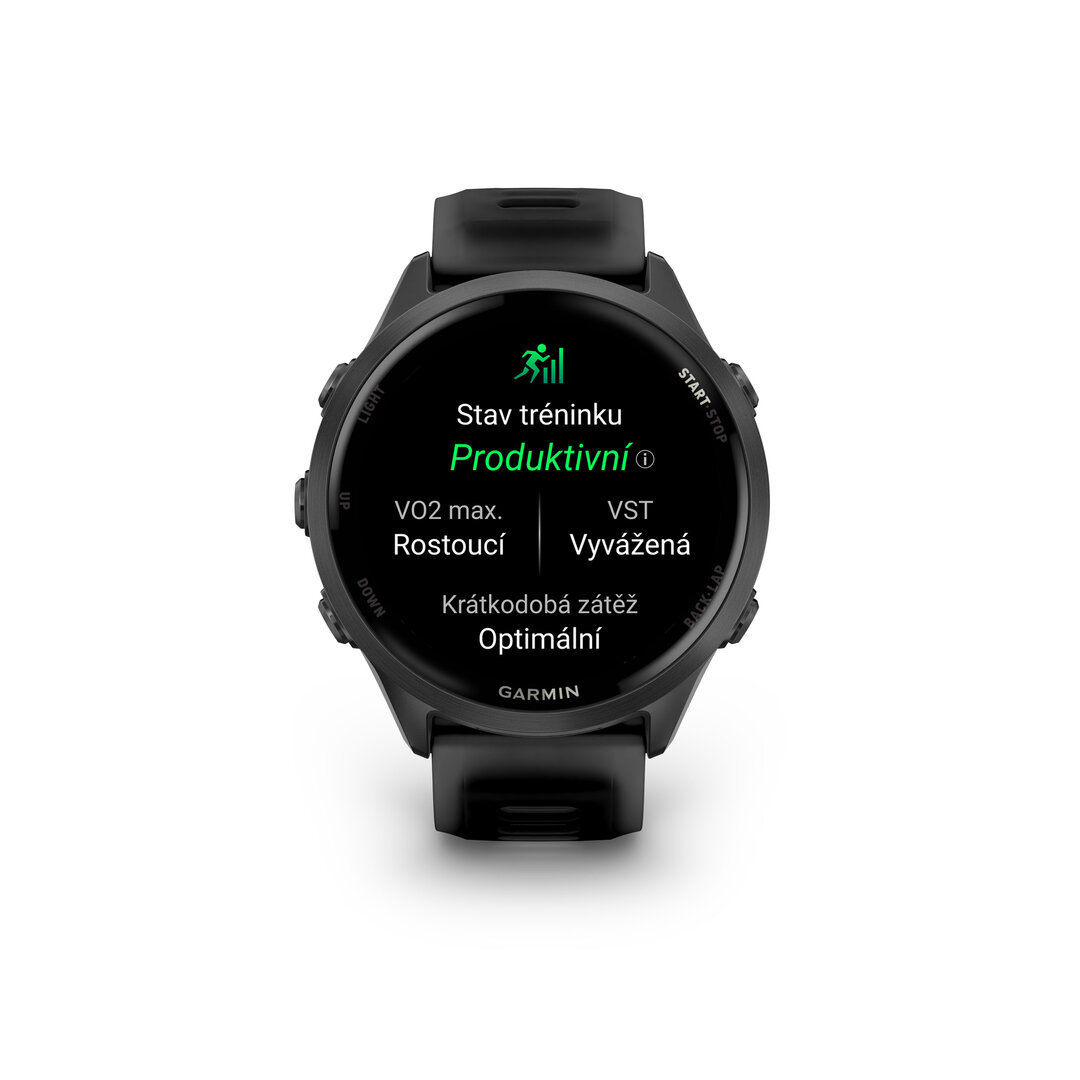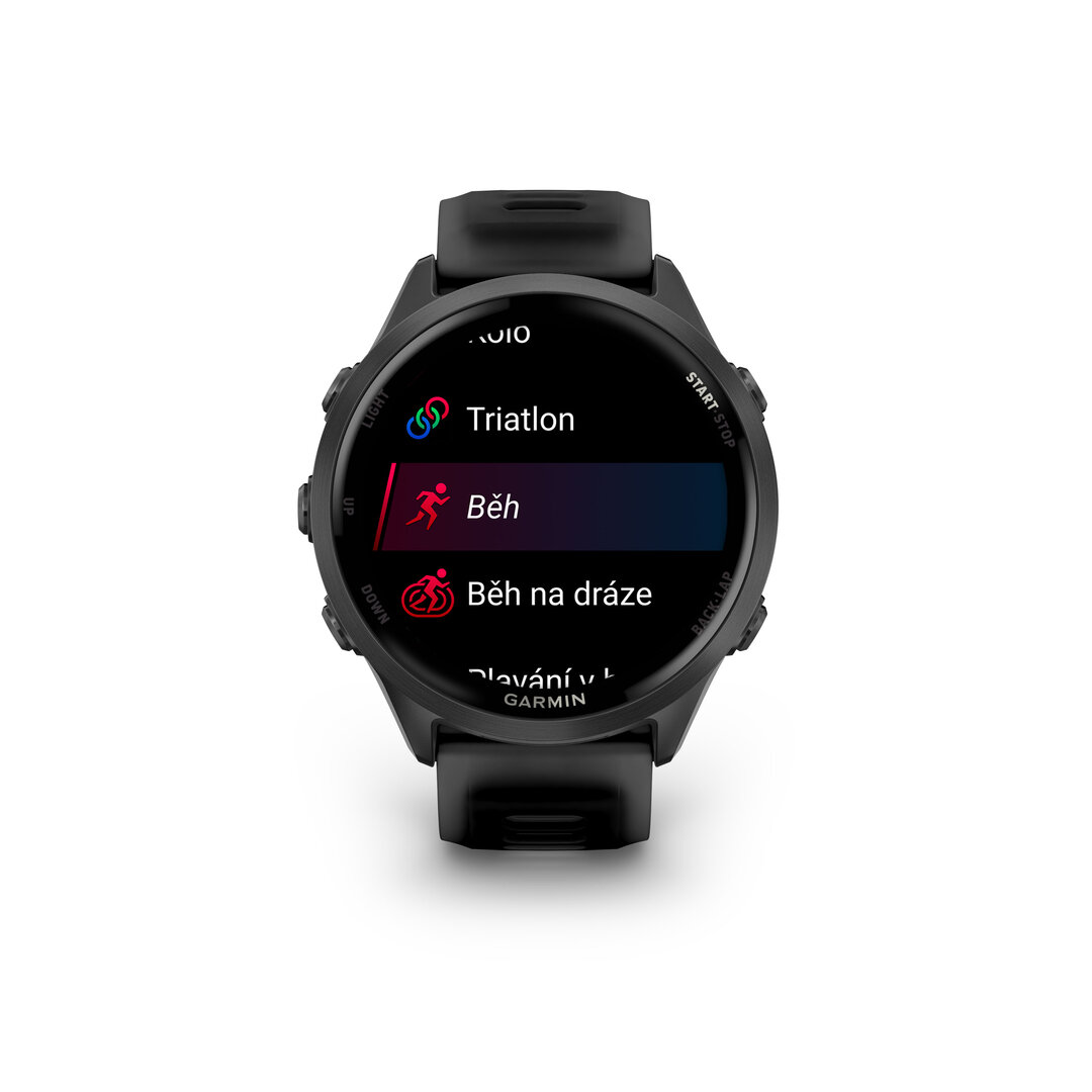Heat and altitude acclimation HR Alerts Auto Lap Auto Pause Auto multisport activities Auto Scroll Auto max HR Finish Time Rest timer Respiration rate (during exercise) Recovery time Daily suggested workouts Activity history on watch Primary training benefit Interval workout HR Calories Configurable lap alerts % HR Max Downloadable training plans Multisport Custom alerts Customizable data pages Customizable activity profiles Course guidance Physio TrueUp Round trip planner Advanced Workouts Training readiness Realtime stamina Power Modes HRR Manual Lap GPS speed and distance Garmin Live Segments Strava Live Segments Training Status HRV stress test Training Effect (aerobic) Training Effect (anaerobic) Training Load Virtual Partner VO2 Max VO2 Max (trail run) Real-time stamina Improved recovery time monitoring Trendline popularity routing HR Broadcast Touch and/or button lock Training Load Focus Race an activity Shortcuts HR Zones Audio prompts