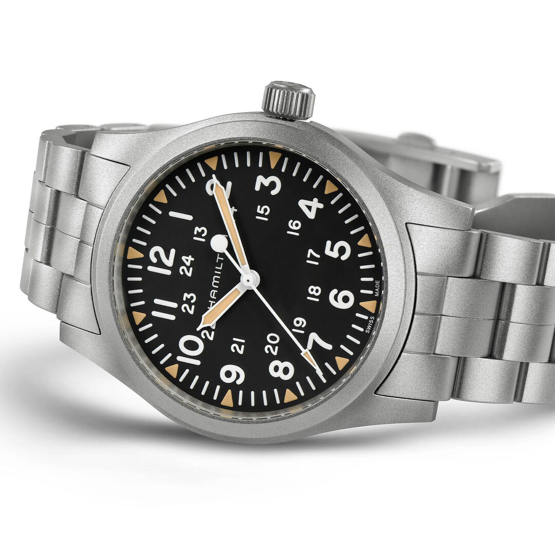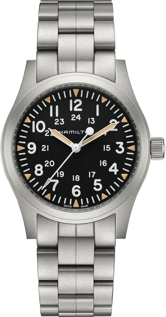 Mechanical with manual winding. Hamilton H-50 placed on ETA 2801-2, Power reserve 80h, 21.600 BPH (3Hz)