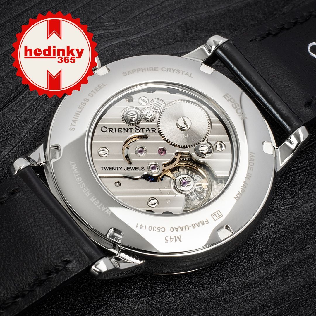 Mechanical with manual winding. Orient F8A62, Power reserve 70h, 20 stones